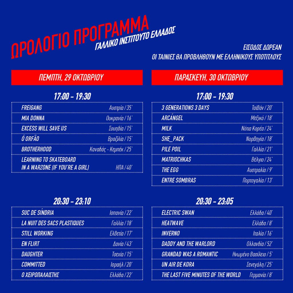 Για 7η συνεχή χρονιά οι Χρυσές Νύχτες φιλοξενούνται στο auditorium του Γαλλικού Ινστιτούτου Ελλάδος, την Πέμπτη 29 και την Παρασκευή 30 Οκτωβρίου.