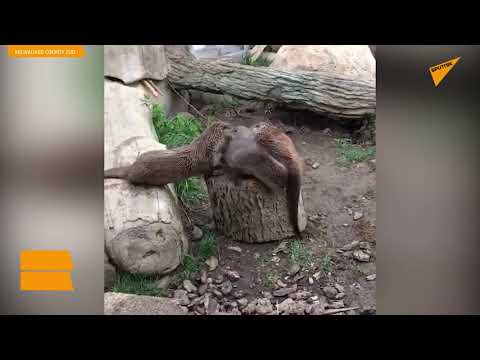 Βίδρες «τσακώνονται» για το ποια θα πάρει την καλύτερη θέση σε κορμό δέντρου