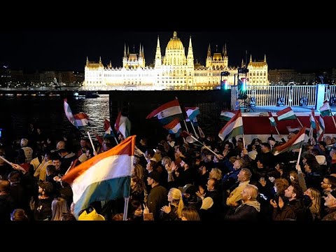 Εκλογές στην Ουγγαρία: Υποστηρικτές του κόμματος του Πέτερ Μάγκιαρ γιορτάζουν στη Βουδαπέστη