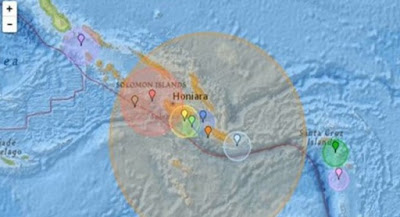 Το κέντρο έγκαιρης προειδοποίησης για τσουνάμι στον Ειρηνικό Ωκεανό με νέα προειδοποίηση του ανέφερε ότι επικίνδυνα σεισμικά κύματα είναι πιθανόν να πλήξουν τις επόμενες τρεις ώρες ακτές στις Νήσους Σολομώντα, στο Βανουάτου, στην Παπούα Νέα Γουινέα, στο Ναουρού, καθώς και την Νέα Καληδονία, το Τουβαλού, και το Κοσράι έπειτα από την σεισμική δόνηση μεγέθους 7,7 βαθμών που σημειώθηκε σε απόσταση 70χλμ από τις νήσους Σολομώντα, σύμφωνα με το Αμερικανικό Γεωλογικό Ινστιτούτο (USGS).