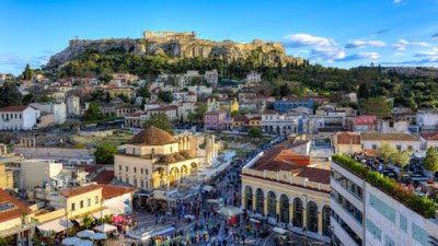 9-α) Υπάρχουν πολλές εκδοχές για την προέλευση της ονομασίας της Πλάκας – μία από τις επικρατέστερες αναφέρει πως οφείλεται σε μια μεγάλη πέτρινη πλάκα που βρέθηκε στο εκκλησάκι του Αγίου Γεωργίου (μέσα στον αρχαιολογικό χώρο του θεάτρου Διονύσου). Αξίζει να αναφέρουμε και μια άλλη ενδιαφέρουσα εκδοχή, πως το όνομα «Πλάκα» προέρχεται από την αλβανική λέξη «πλιάκα» που σημαίνει παλαιός. Επικράτησε κατά την εγκατάσταση αρβανιτών «γκαγκαρέων» κατά τον 17ο αιώνα στην περιοχή γύρω από την Ακρόπολη που ήταν έρημη και εγκαταλελειμμένη μετά τους ρωμαϊκούς και βυζαντινούς χρόνους. Οι αρβανίτες αυτοί έλεγαν ότι κατοικούν στην «πλιάκα» (παληά) Αθήνα και έτσι έμεινε το όνομα.