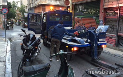 Μάλιστα εντοπίστηκε ύποπτη μηχανή μεγάλου κυβισμού στην οδό Θεμιστοκλέους στη διασταύρωση με τη Σόλωνος στο κέντρο της Αθήνας. Στο σημείο έσπευσαν άμεσα αστυνομικές δυνάμεις, απέκλεισαν την περιοχή και στη συνέχεια γερανός της αστυνομίας πήρε τη μηχανή.