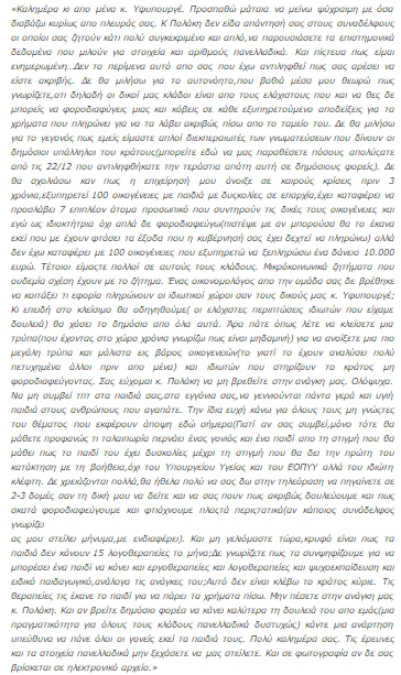 Αρκετοί γονείς παιδιών με ειδικές ανάγκες αλλά κι επαγγελματίες του χώρου έχουν, ωστόσο, διαφορετική άποψη. Τα σχόλια δύο εξ αυτών στην προαναφερόμενη ανάρτηση του αναπλ. Υπουργού, είναι χαρακτηριστικά: