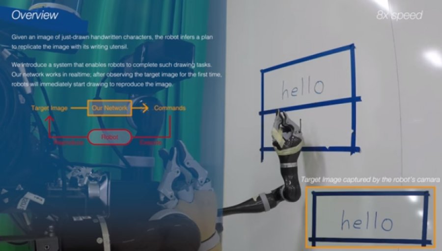 Ο αλγόριθμος χρησιμοποιεί δύο δίκτυα βαθιάς μάθησης που αναλύουν τις εικόνες μιας λέξης ή ενός σκίτσου και συμπεραίνουν ποιες είναι οι καλύτερες «μολυβιές» για να αναδημιουργηθεί η φράση ή το σκίτσο. Αντίθετα με άλλα ρομπότ που χρειάζεται να προγραμματισθούν και να τροφοδοτηθούν με σχετικές πληροφορίες εκ των προτέρων, το νέο ρομπότ μαθαίνει μόνο του πώς να γράφει κάτι που δεν έχει ξαναδεί ποτέ πριν.