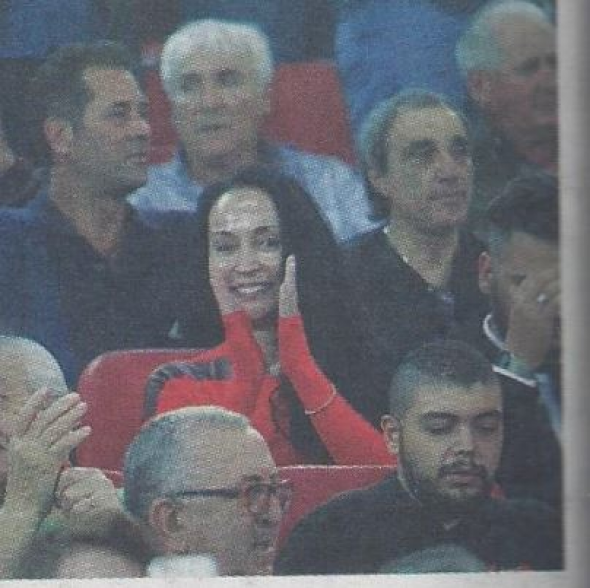 Η σύζυγος του Ακη Τσοχατζόπουλου, Βίκυ Σταμάτη, το βράδυ της Κυριακής μαζί με τον γιο της πήγαν στο γήπεδο για να δουν το ντέρμπι Ολυμπιακός – ΑΕΚ.