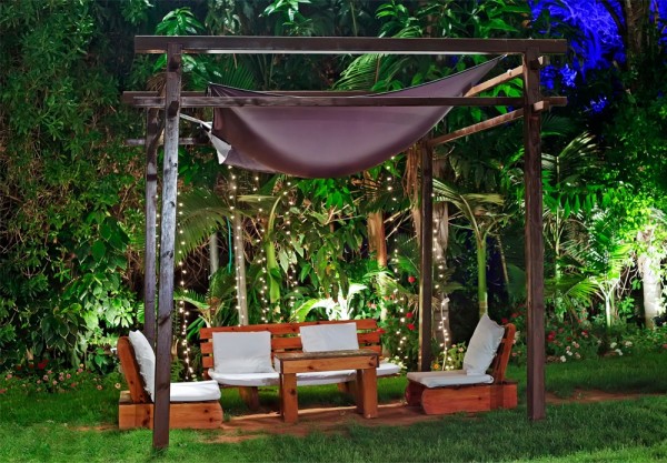 Ναι, το έχουμε ξαναπεί, τα χριστουγεννιάτικα φωτάκια του δέντρου μπορούν να μας χρησιμεύσουν και σε άλλες περιόδους του χρόνου. Παίρνουμε τα κλασικά φωτάκια και περνάμε είτε πάνω από αυτά είτε γύρω από αυτά ένα τούλι. Κρεμάμε τη δημιουργία μας από κάποιο δοκάρι της αυλής ή από το σίδερο της τέντας μας. Φροντίζουμε να έχουμε ελέγξει καλά τα λαμπάκια για να εντοπίσουμε τυχόν διαρροές.