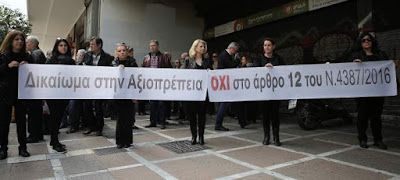 Σιωπηρή συγκέντρωση διαμαρτυρίας πραγματοποιούν, έξω από το υπουργείο Εργασίας, χήρες πεσόντων στελεχών των Σωμάτων Ασφαλείας και Ενόπλων Δυνάμεων, ζητώντας από την κυβέρνηση να άρει το ηλικιακό κριτήριο χορήγησης σύνταξης χηρείας καταργώντας το σχετικό άρθρο 12 του ν.4387/2016.