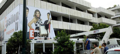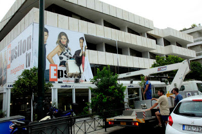 Οι γιγαντοαφίσες κάλυπταν την πρόσοψη ενός ολόκληρου κτιρίου δίπλα στο Παναθηναϊκό Στάδιο. Σε αυτές πρωταγωνιστούσαν γνωστοί παρουσιαστές του τηλεοπτικού σταθμού.