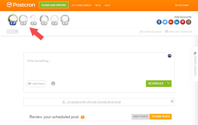 ΒΗΜΑ 3: Αφού προσθέσετε τους λογαριασμούς σας, επιλέξτε το λογαριασμό (-ους) όπου θέλετε να κάνετε δημοσίευση (κάνοντας κλικ στα αντίστοιχα εικονίδια για κάθε δίκτυο)….και μπορείτε να ξεκινήσετε την ανάρτηση σας..