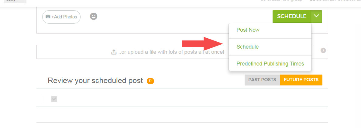 ΒΗΜΑ 5: Αφού τελειώσετε με τη δημιουργία και τον προγραμματισμό των αναρτήσεων σας. Μπορείτε οποιαδήποτε στιγμή να ελέγξετε η να τις αναθεωρήσετε επιλέγοντας Είτε το “Προηγούμενες Δημοσιεύσεις” (για να δείτε αυτές που ήδη έχουν δημοσιευθεί) είτε το “μελλοντικές δημοσιεύσεις” (για να αναθεωρήσετε αυτές που έχουν προγραμματιστεί να δημοσιευτούν ).